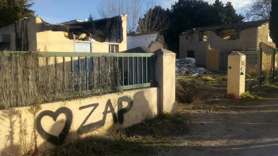 Ci-dessous les maison évoquées dans l’entretien, mises hors d’état par la mairie. De son propre aveux, pour éviter la contagion de la résistance au projet par l’occupation… La laine de verre n’attend que le prochain mistral.